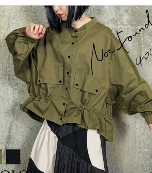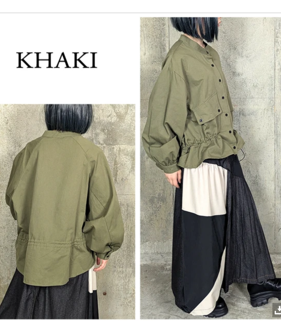 Aラインのウエスト位置にスピンドルが付いていてしぼることの出来るショートジャケット。