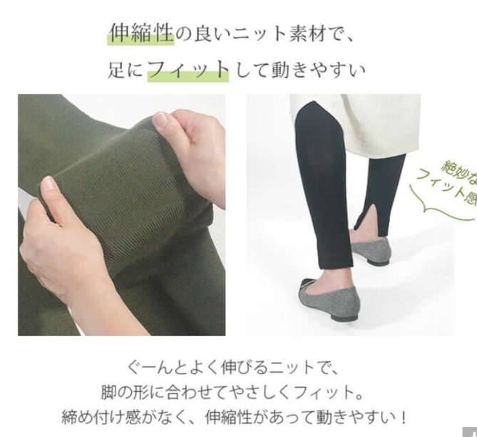 【ナチュリッシュ】エジプト綿 ストレートニットレギンス