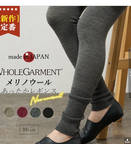 着用したまま外に出ることも出来て、履き心地の良さのどちらも兼ね揃えた、ホールガーメントのレギンス。麻混のレギンスで、空調による足まわりの冷えを守り、汗を吸って発散させます。またホールガーメントで編み上げているので、窮屈な締め付けも無く、ホッと一息つけるくつろぎ時間を満喫できるレギンスです。履き心地は気持ちよく感じられるよう裏側がパイル状になっています。
