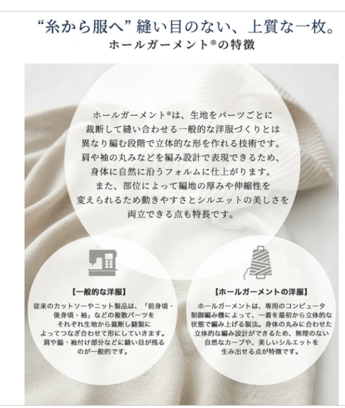 ・裁断も縫製もせず、一着まるごと編み機で立体的に編み上げたニットウェア