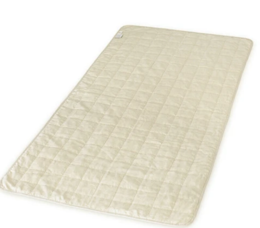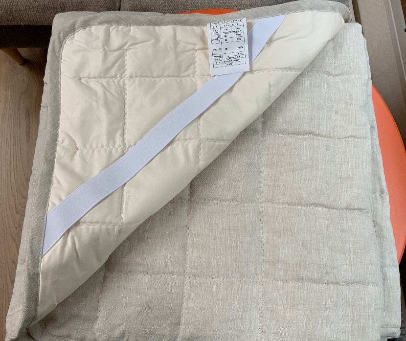 表地にリネンを使用しました。高級なラミーわたをたっぷり使用し、しっかりとベッドパッドとして使用するボリューム感を持たせています。高級感のある200マスのキルト「スクエア200S」を採用しています。