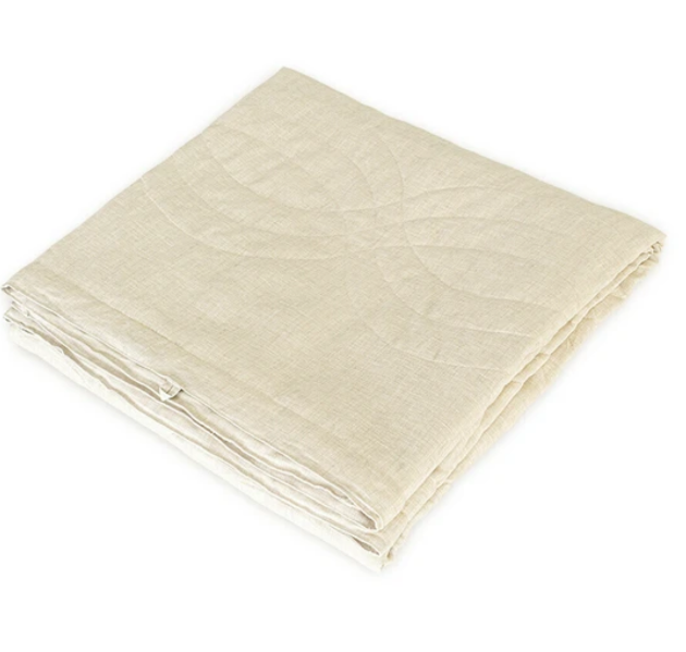 リネン生地に薄いラミーわたを封入したキルトケットです。波をイメージした「マリンキルト」をデザインし、「上質感」と「リゾート感」を表現しました。南の島のリゾートを体感していただけるよう、いつもよりワンサイズ大きめサイズで、ゆったりとしたご使用をおすすめしています。