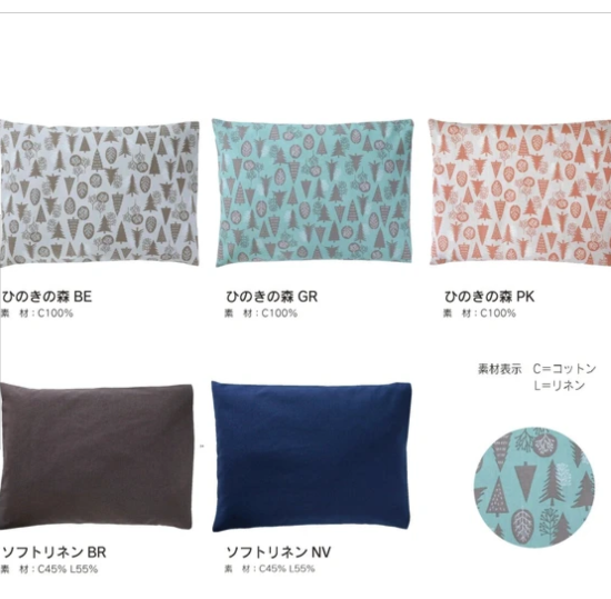 カバー生地 ひのきの森:綿100%/ソフトリネン:麻55%、綿45%