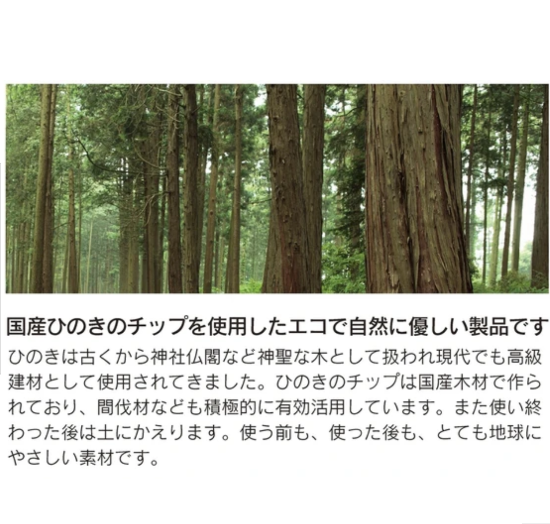◎国産ひのきのチップを使用したエコで自然に優しい製品です。
